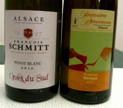 Pinot blanc La Croix du Sud 2016 – Domaine F. Schmitt à Orschwihr : nez fin et suave, registre floral et balsamique, matière étirée, équilibre bien droit, boisé parfaitement intégré, finale sur la résine et les fruits blancs.
