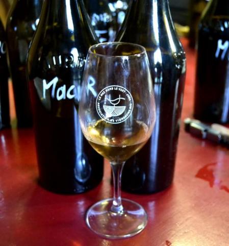 Côtes du Jura Macvin blanc : nez complexe et très séduisant avec de belles notes florales, bouche ronde et gourmande, finale très sapide avec une longue persistance aromatique.