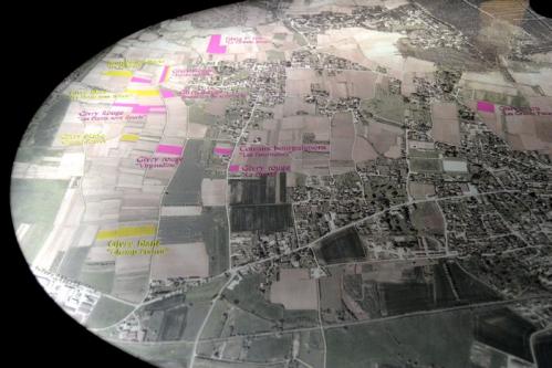 Sur le dessus du bar une représentation précise du parcellaire du domaine grâce auquel on peut situer l’origine des vins qu’on déguste.
