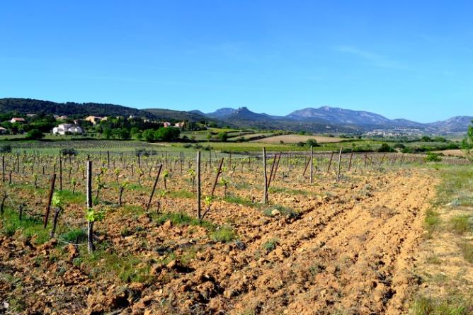 Des vignes, du ciel bleu et le Mont Baudile à l’horizon…on dirait le Sud